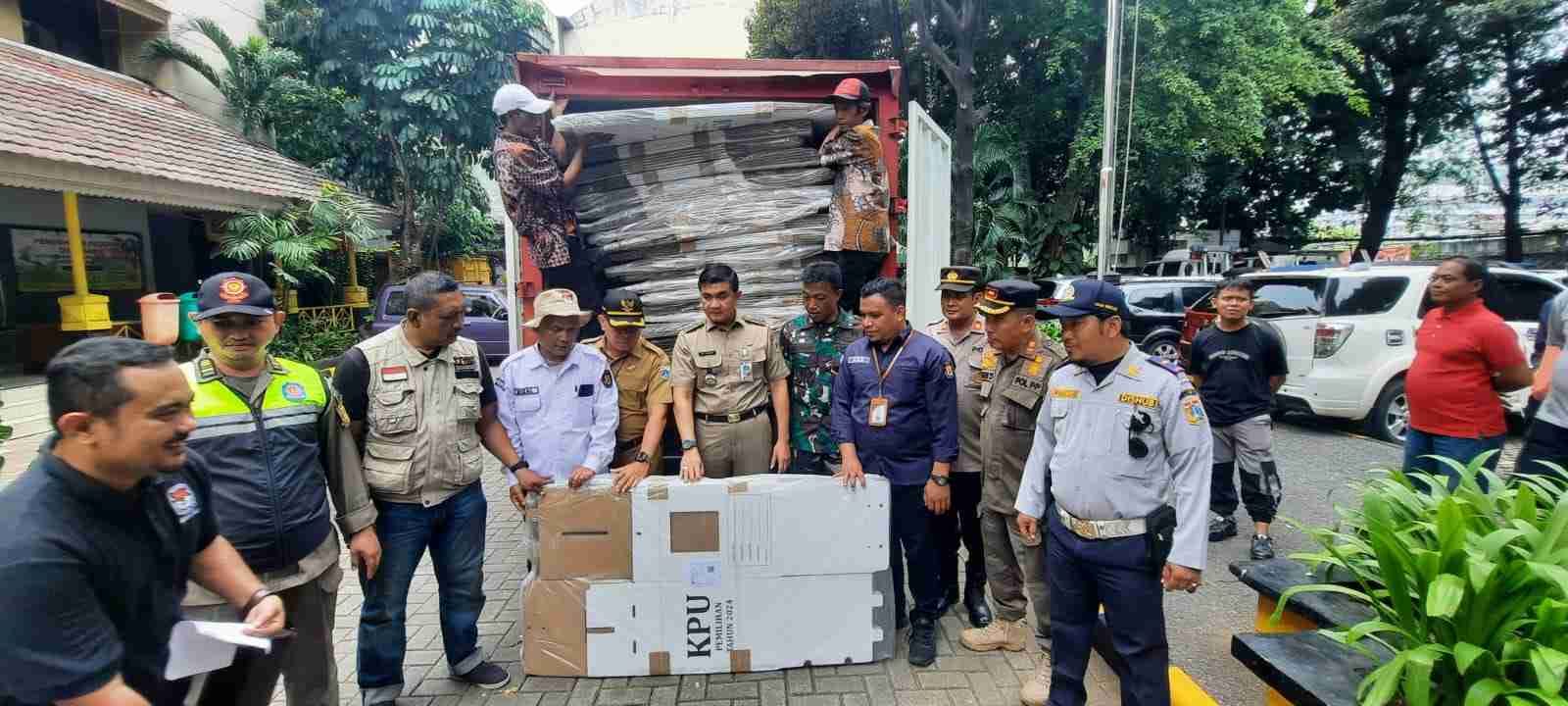 Logistik Pilkada yang didistribusikan dari KPU Jakarta Pusat ke Kantor Kecamatan Kotak Suara 228 Buah dan Bilik Suara 912 Buah.