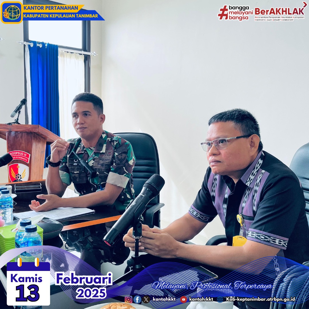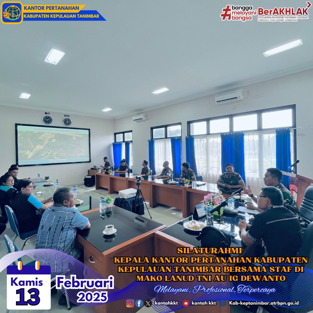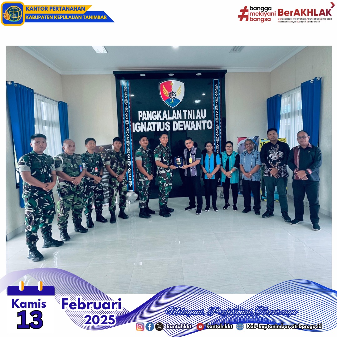 Kepala Kantor Pertanahan Kabupaten Kepulauan Tanimbar bersama staf bersilahturahmi sekaligus melaksanakan kunjungan kerja di Markas Komando Lanud TNI Angkatan Udara IG. Dewanto di Desa Tumbur, Kecamatan Wertamrian. Kamis (13/2/25).