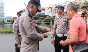 Kegiatan ini dipimpin langsung oleh Kabag Ops Polres Kotamobagu Kompol Jendri Sermanus Lewan, SE dan dilaksanakan di pusat Kota Kotamobagu tepatnya di Bundaran Paris Superstore, Kamis (17/7/2025).