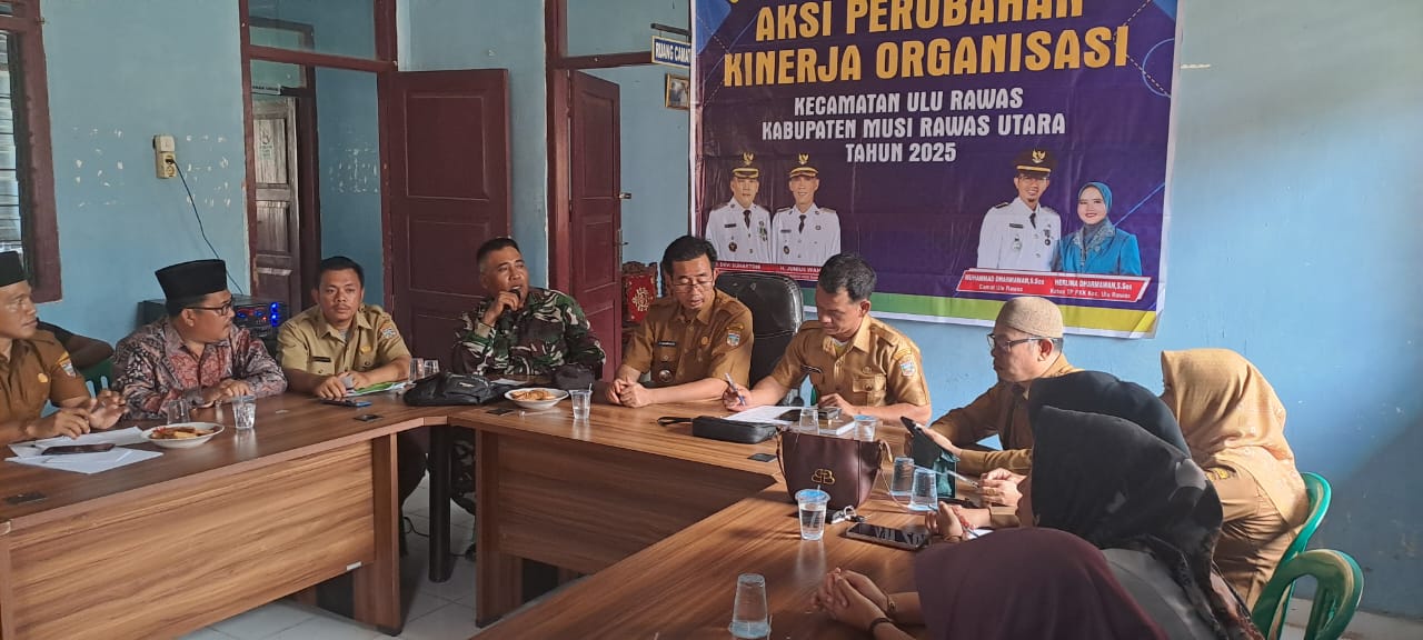 Pemerintah Kecamatan Ulu Rawas menggelar Rapat Lintas Sektor yang membahas Aksi Perubahan Kinerja Organisasi Lembaga Adat di setiap desa dan kelurahan dalam wilayah hukum Kecamatan Ulu Rawas. Kegiatan ini dilaksanakan sebagai bagian dari upaya mendukung program strategis Pemerintah Daerah Kabupaten Musi Rawas Utara sesuai Peraturan Bupati (Perbub) Muratara yang mengatur tata kelola organisasi kemasyarakatan dan kelembagaan adat.Senin,(14/07/2025).