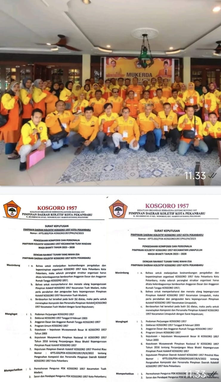 Pekanbaru | Kesatuan Organisasi Serbaguna Gotong Royong (Kosgoro 1957) Kota Pekanbaru dan Pimpinan Kolektif (PK) Kecamatan termasuk organisasi masyarakat yang sah dan di akui keberadaannya di Kota Pekanbaru.