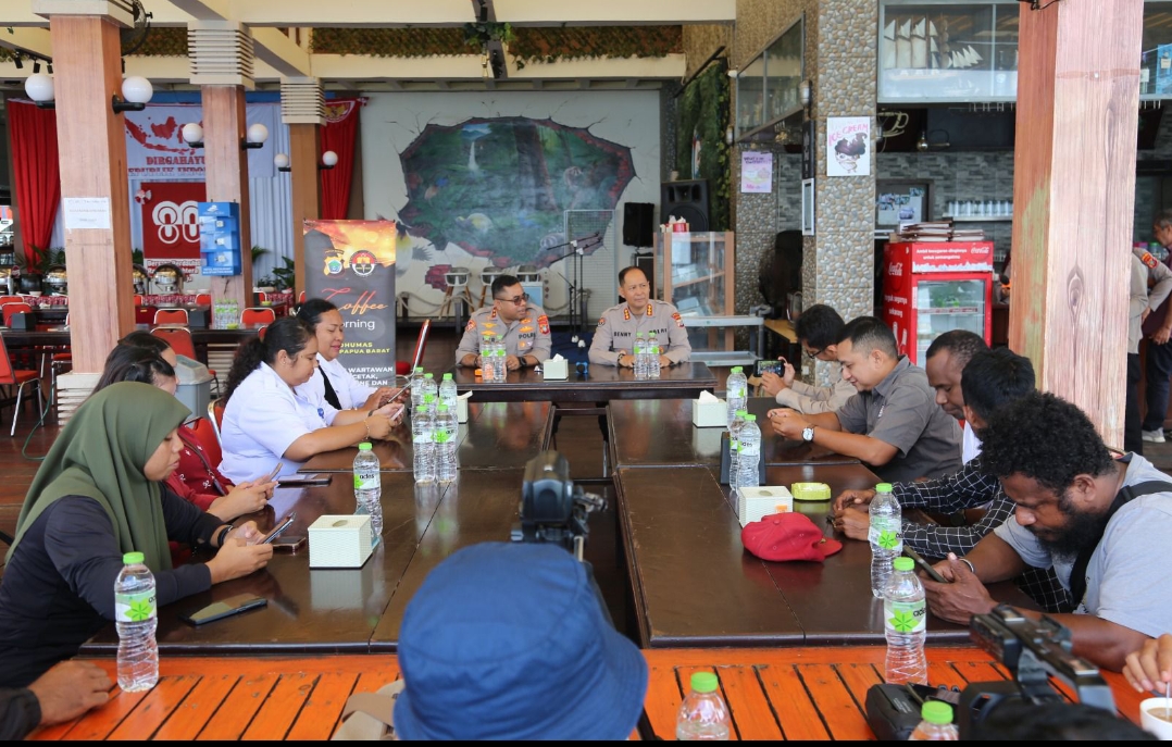 Manokwari – Kepolisian Daerah Papua Barat terus mempererat hubungan kemitraan dengan insan pers sebagai mitra strategis dalam menjaga keamanan dan ketertiban masyarakat, Hal ini ditunjukkan melalui kegiatan coffee morning yang digelar Selasa, (12/8/25)