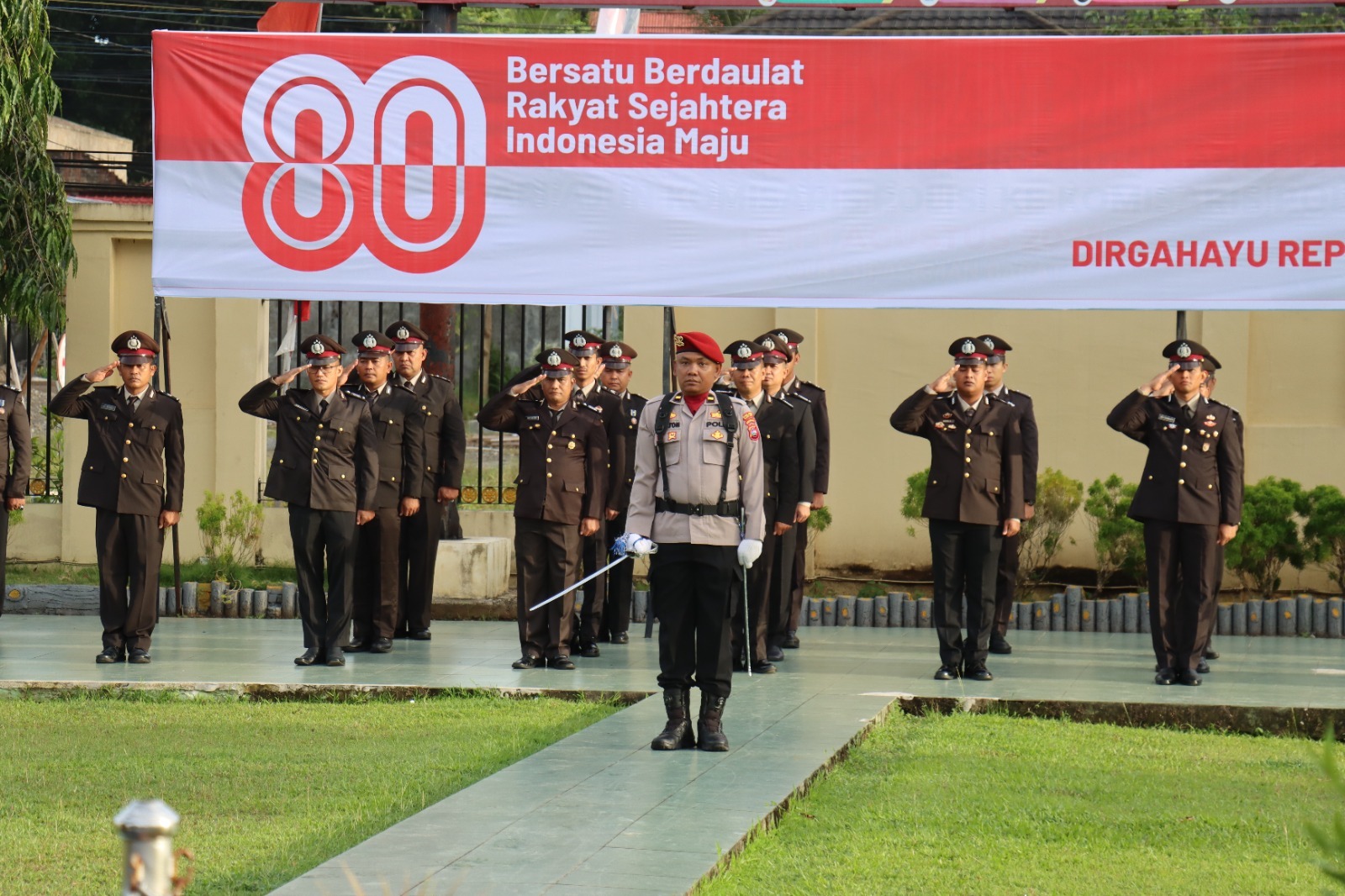 Kapolres Pasaman Barat AKBP Agung Tribawanto, S.Ik menyampaikan bahwa momentum HUT Kemerdekaan ke-80 ini menjadi pengingat penting bagi seluruh personel Polri untuk terus meningkatkan dedikasi, profesionalisme, dan loyalitas dalam memberikan pelayanan terbaik kepada masyarakat.