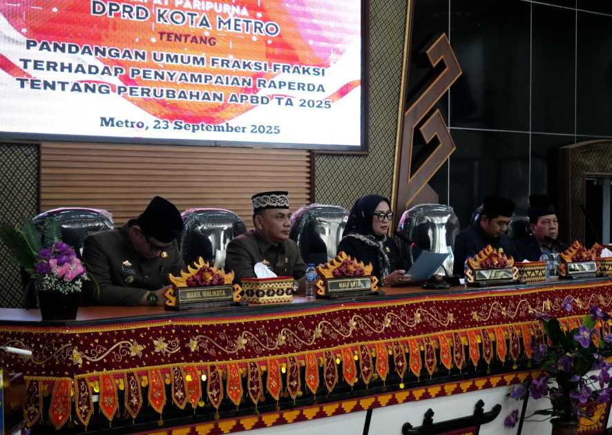 “Atas nama seluruh Fraksi di DPRD Kota Metro, kami menyambut baik pengajuan Perubahan APBD Tahun Anggaran 2025 dalam rangka penyesuaian dengan dinamika yang ada, baik dari sisi pendapatan daerah maupun dari sisi belanja daerah,” ucapnya.