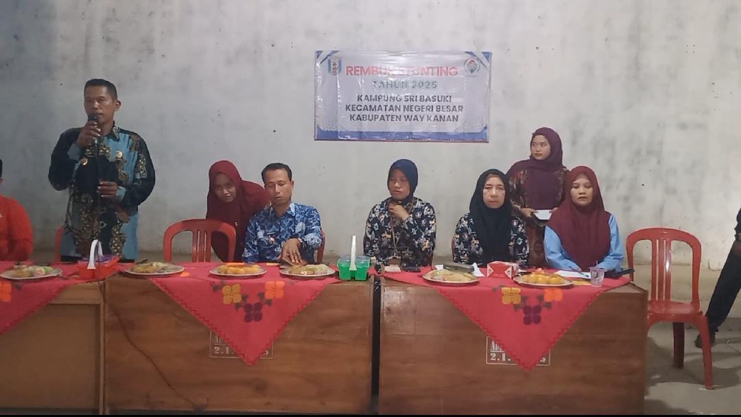 Way Kanan, FaktaBeritaOnline – Pemerintah Kampung Sribasuki, Kecamatan Negri Besar, Kabupaten Way Kanan, Provinsi Lampung, menggelar acara Rembuk Stunting Tahun 2025 pada Jumat (3/9/2025) di Balai Kampung setempat. Acara ini dihadiri oleh Camat Negri Besar, Junardi, Uspika Kecamatan, Kepala Kampung setempat, Kadiso, UPT Puskesmas dan stafnya, kader posyandu, ibu hamil, pendamping desa lokal, serta puluhan masyarakat.