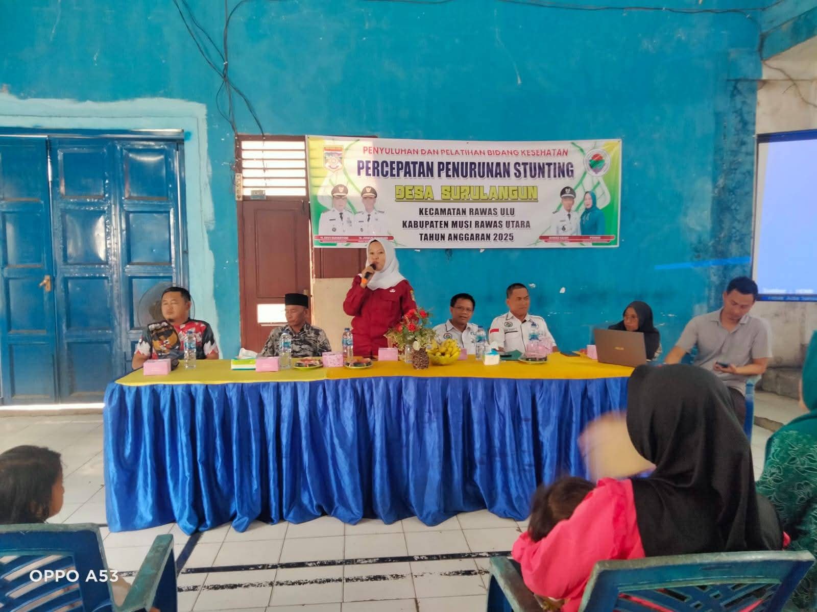 Pemerintah Desa Surulangun, Kecamatan Rawas Ulu, Kabupaten Musi Rawas Utara (Muratara), Provinsi Sumatera Selatan, menggelar Sosialisasi Pencegahan dan Percepatan Penurunan Stunting.