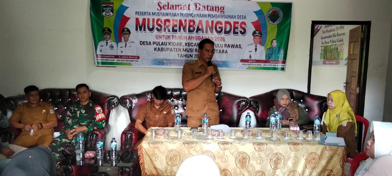 Pemerintah Desa Pulau Kidak, Kecamatan Ulu Rawas, Kabupaten Musi Rawas Utara (Muratara), Provinsi Sumatera Selatan, melaksanakan Musyawarah Perencanaan Pembangunan Desa (Musrenbangdes) untuk penyusunan Rencana Kerja Pemerintah Desa (RKPDes) Tahun 2026, Selasa (14/10/2025) bertempat di Kantor Desa Pulau Kidak.