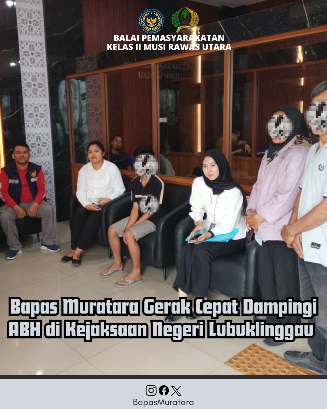 Balai Pemasyarakatan (Bapas) Musi Rawas Utara melalui Pembimbing Kemasyarakatan (PK) Nilsa Hasian melakukan pendampingan terhadap Anak Berhadapan dengan Hukum (ABH) dalam proses pemeriksaan di Kejaksaan Negeri Lubuklinggau, Rabu (19/11). Kegiatan ini dilakukan sebagai bentuk pelaksanaan kewajiban sesuai Undang-Undang Nomor 11 Tahun 2012 tentang Sistem Peradilan Pidana Anak (SPPA).