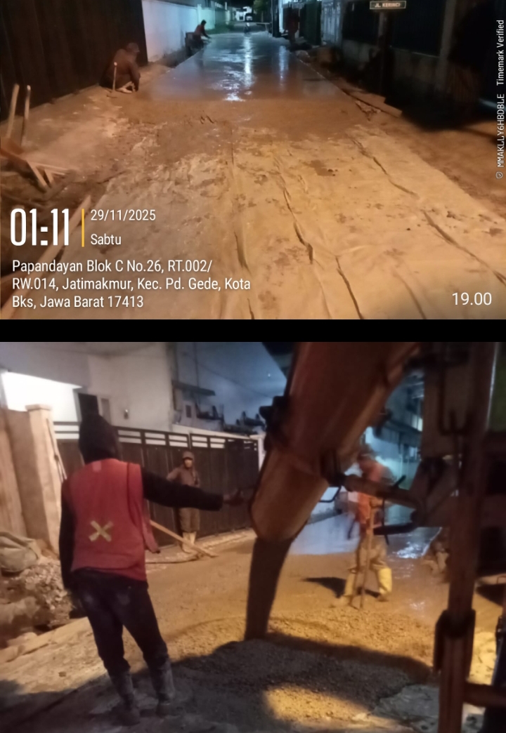 Pasalnya dalam dokumentasi awak media di lapangan pekerjaan betonisasi di Perumahan jatimakmur jalan kerinci pada sabtu malam