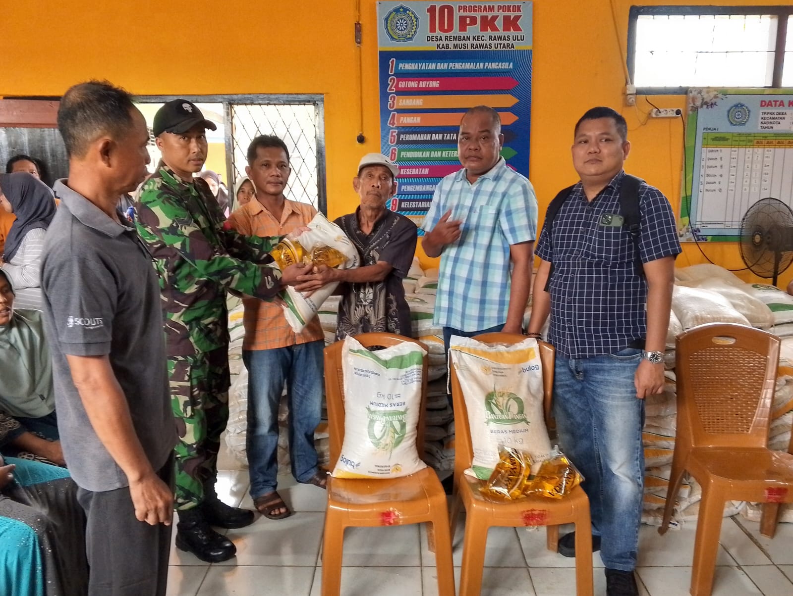 Pemerintah Desa Remban, Kecamatan Rawas Ulu, Kabupaten Musi Rawas Utara (Muratara), Provinsi Sumatera Selatan, menyalurkan bantuan beras Bulog kepada 197 Keluarga Penerima Manfaat (KPM). Kegiatan berlangsung di Kantor Desa Remban dan berjalan tertib serta lancar.