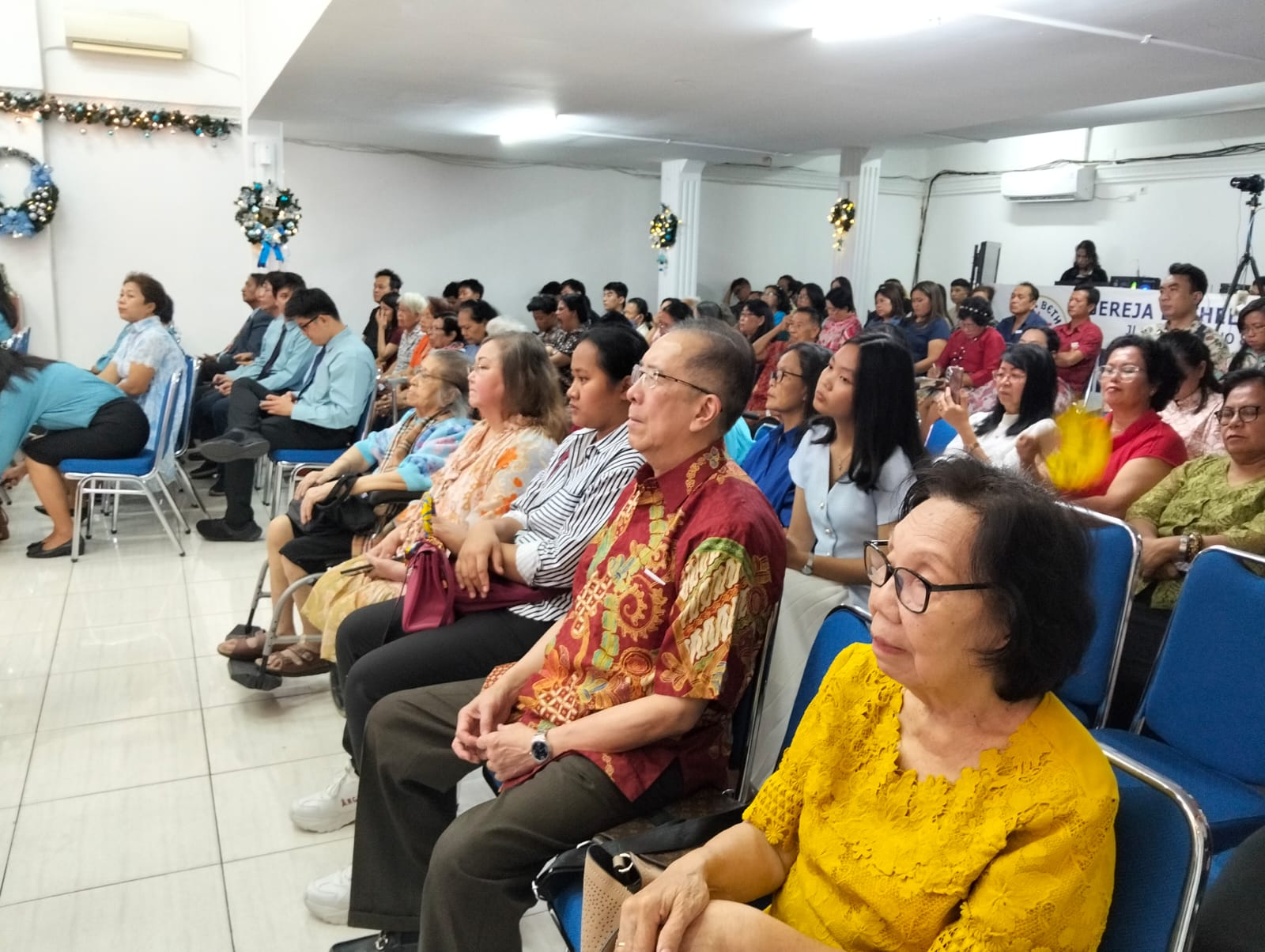 Ibadah Natal yang digelar di Gereja Bethel Indonesia Jemaat Kasih, berlokasi di Jalan Morotai Nomor 8 RT 06/05, Kelurahan Cideng, dihadiri sekitar 100 jemaat. Ibadah dipimpin oleh Pendeta Apin Militia C dengan mengangkat tema “Yesus Datang Menggenapi Janji Bapa”, serta penanggung jawab kegiatan atas nama Haryanto.